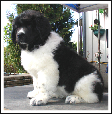 Blondie has given us one litter out of Cannonbear's Crawling In The Dark "Otto". They are almost 17 months old by now (december 08) and grows very quickly. Both of the girls - Riverdance "Gertrud" and Royal Collection "Mysan" lives with a breeder of leonberger and are enjoying their life with Kristina and her family. The male Krambjörnen's Rolling The Dice "Sixten" is very promising for his age and a beloved familydog living up to all the treats of the real newfoundland. Gertrud was shown at "Lilla Stockholm" and went BOB-puppy. Hopefully they will have some nice time out on shows when they have matured and maybe they will continue the white and black line in their future offspring. Lots of thanks to Randi and Ola for sending Blondie to us.