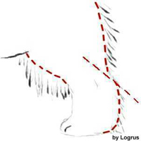 Genom att klippa bort överdriven pälsväxt visar man hundens bakbensvinklar. Newfoundlandshundar skall ha korta hasor, trimma därför pälsen från hasen och neråt i 45 graders vinkel, och den nedre delen vertikalt mot marken (se bild nedan).