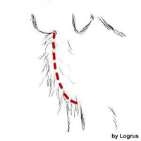Börja bakifrån och gå framåt, först vänster flank, sedan höger flank. Trimma pälsen under magen och bröstkorgen, börja från bakdelen och fram till armhålan. Klipp inte för mycket så att du gör intryck av för långa ben eller för lite (korta ben).