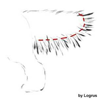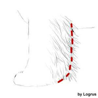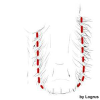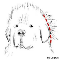 Bakom öronen växer ofta mjukt och alldeles för långt hår som stör huvudformen. Klipp från öronfästet och neråt. (Se bild nedan)