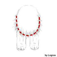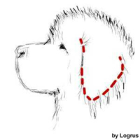 Ibland behövs ingen korrigering här, men ibland är pälsen på nacken och korset så tjock att hunden ser ut att ha krage och/eller blir för hög över korset. Använd inte sax här utan en så kallad tovskärare, till exempel Mars Coat King, för att tunna ur underullen